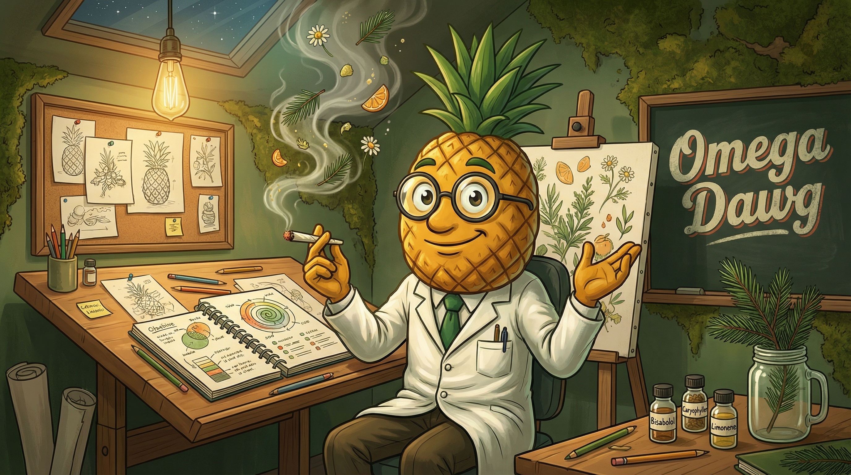 Okay, so I just took a couple hits of Omega Dawg and I need to describe what's happening in my head right now — and it's genuinely interesting. There's this immediate cerebral lift that feels like someone turned the brightness dial up on my thoughts. Everything feels more expansive and connected, like my mental bandwidth just doubled. I'm noticing ideas linking together in ways they weren't before — classic limonene and terpinolene energy doing their thing on the neural pathways.